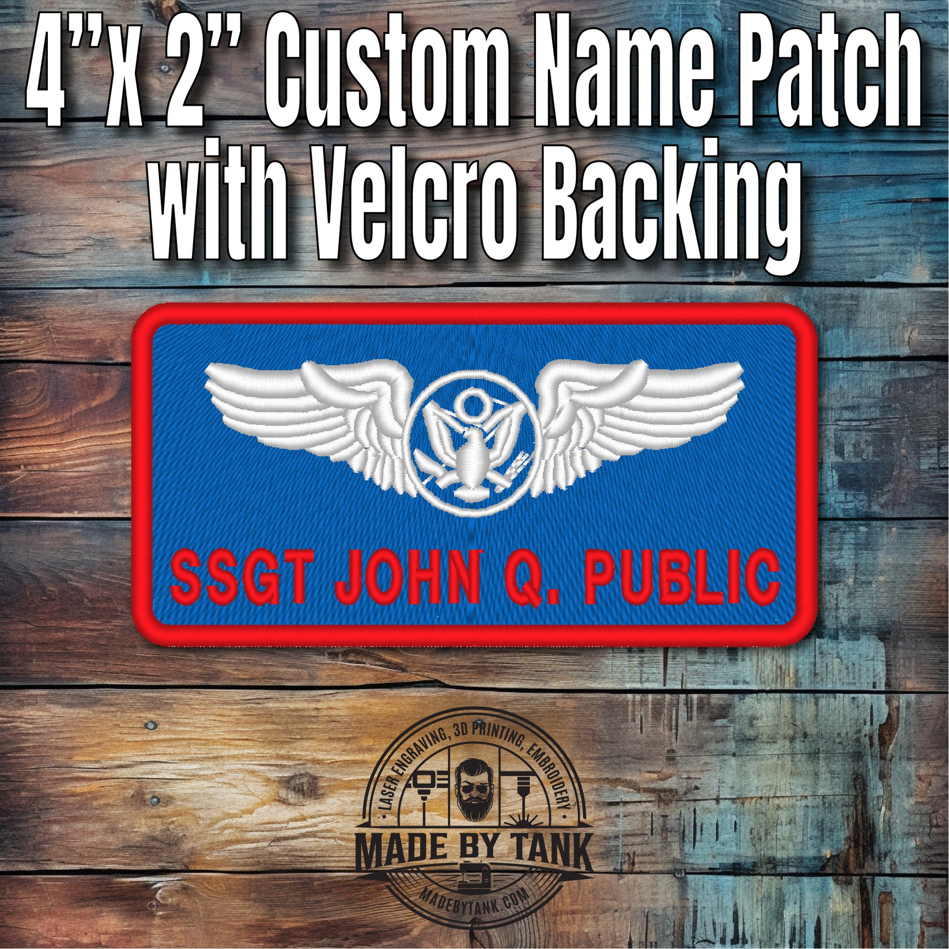 Step up your uniform game with our fully customizable Military Embroidered Nametags. Tailor-made to suit your specifications, these patches are an essential addition to your military attire. Measuring at a standard 4 inches by 2 inches, each nametag is precision-stitched, offering you the freedom to select from an array of background and border colors, font styles, and thread colors for name and badge.